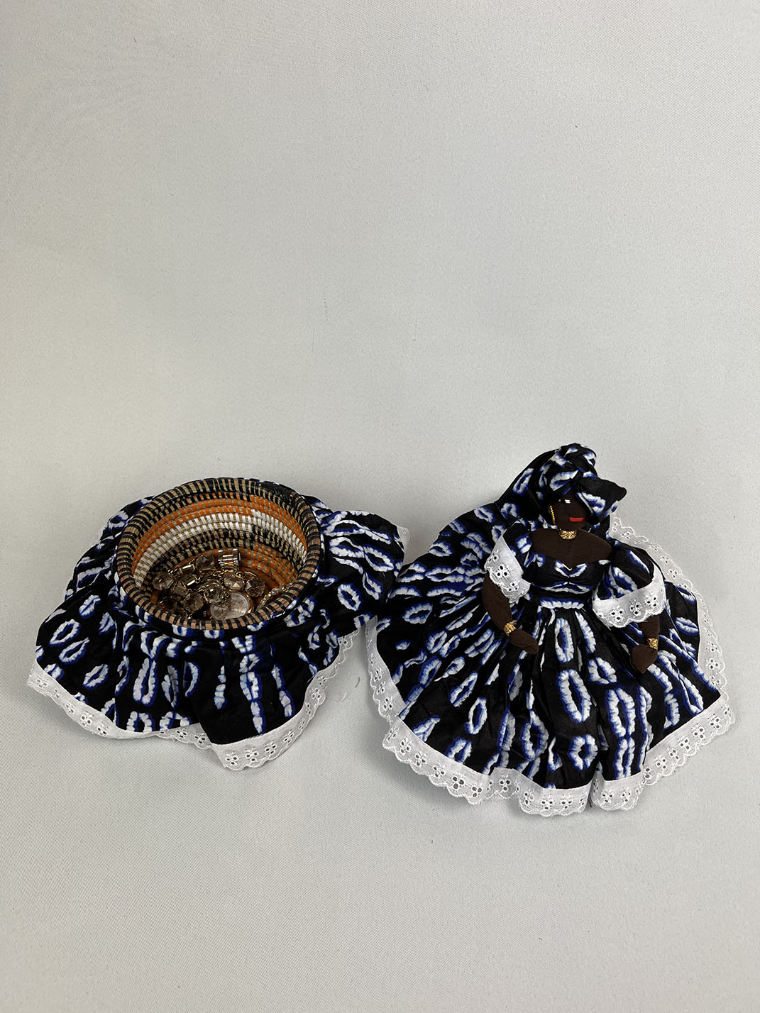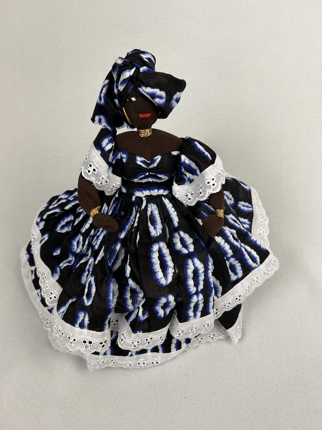 Handgefertigte Puppe, gekleidet in ein traditionelles Kleid aus Zentralafrika. Diese Puppe ist sorgfältig genäht. Es wird von Kunsthandwerkerinnen im Rahmen eines Frauenförderungsprogramms in Kenia hergestellt. Länge: 12 Zoll - 30 cm.
