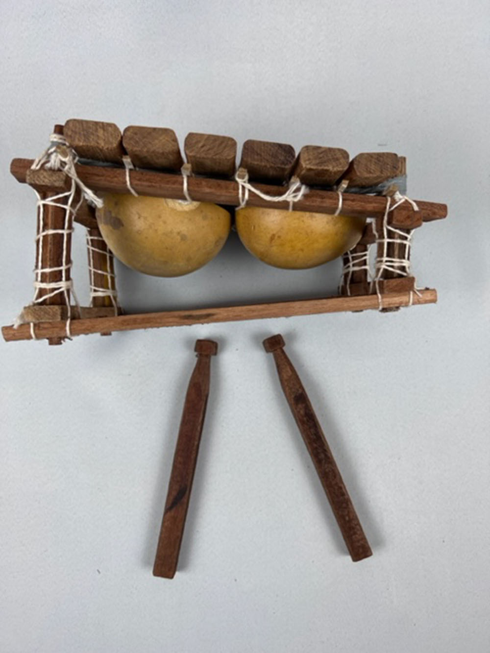Schlägel: Das Balafon wird mit Schlägeln gespielt, die oft mit Gummi oder Stoff umwickelt sind, um den Klang zu mildern.
