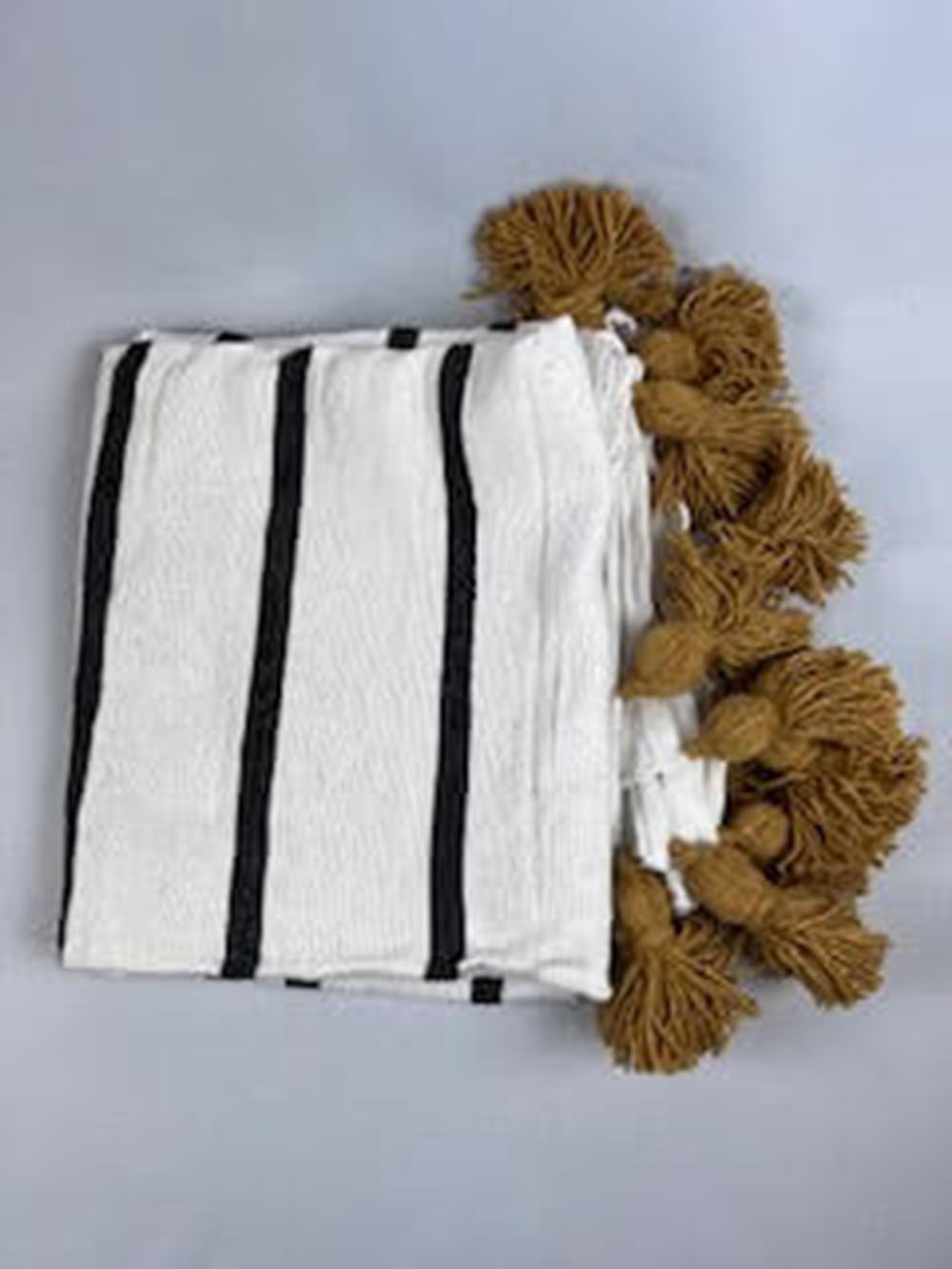 "POM POM DECKE - Quaste Überwurf Decke - Marokkanische Hochzeitsdecke - Handgemachte King Size Decke - Einweihungsgeschenk - Baumwolldecken, Maß-2,70x1,90 (106x75 Zoll)