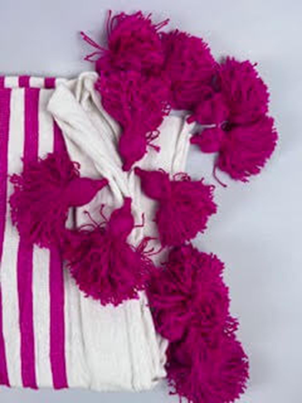 Marokkanische Decke, handgewebter Überwurf, Quastendecken, Pom Poms, Boho-Decke, Couverture marocaine, marokkanische Pom Pom Decken, Maß-1,50x1,40 cm (60x55 Zoll)
